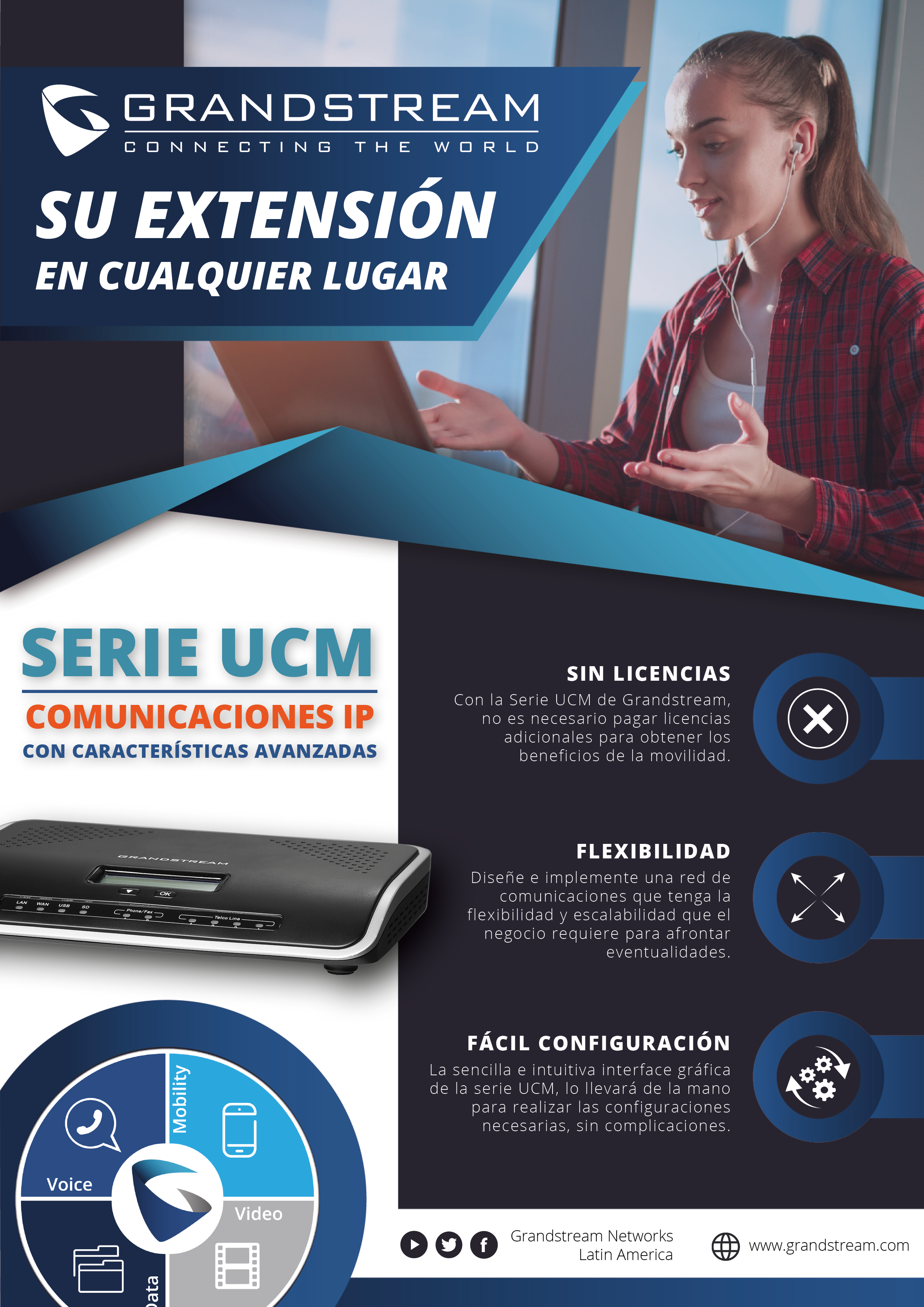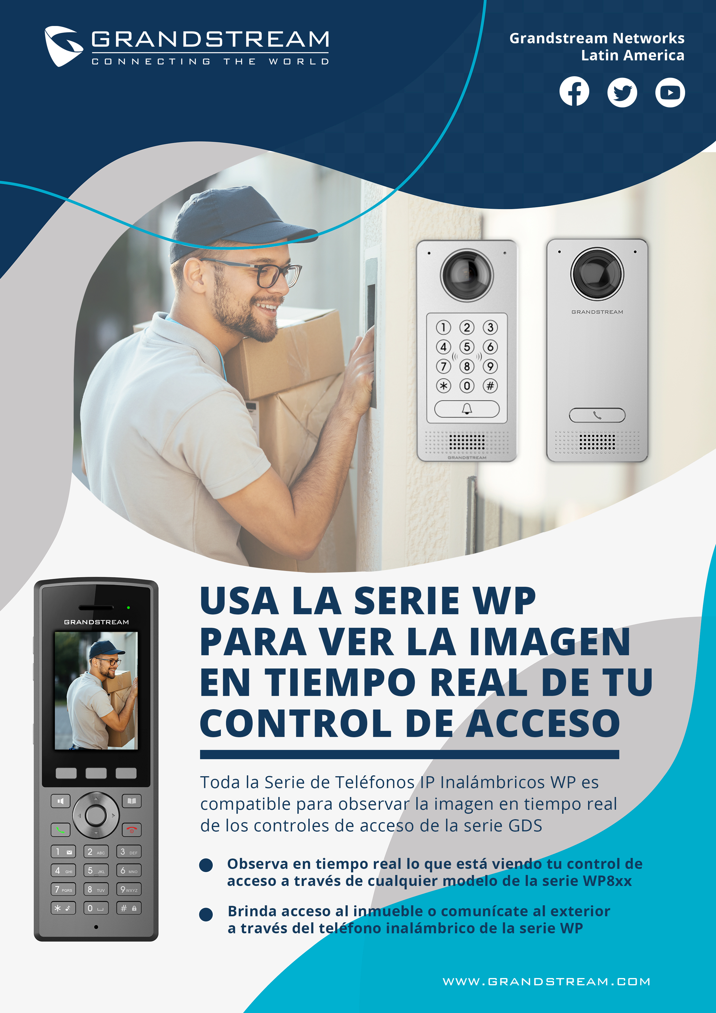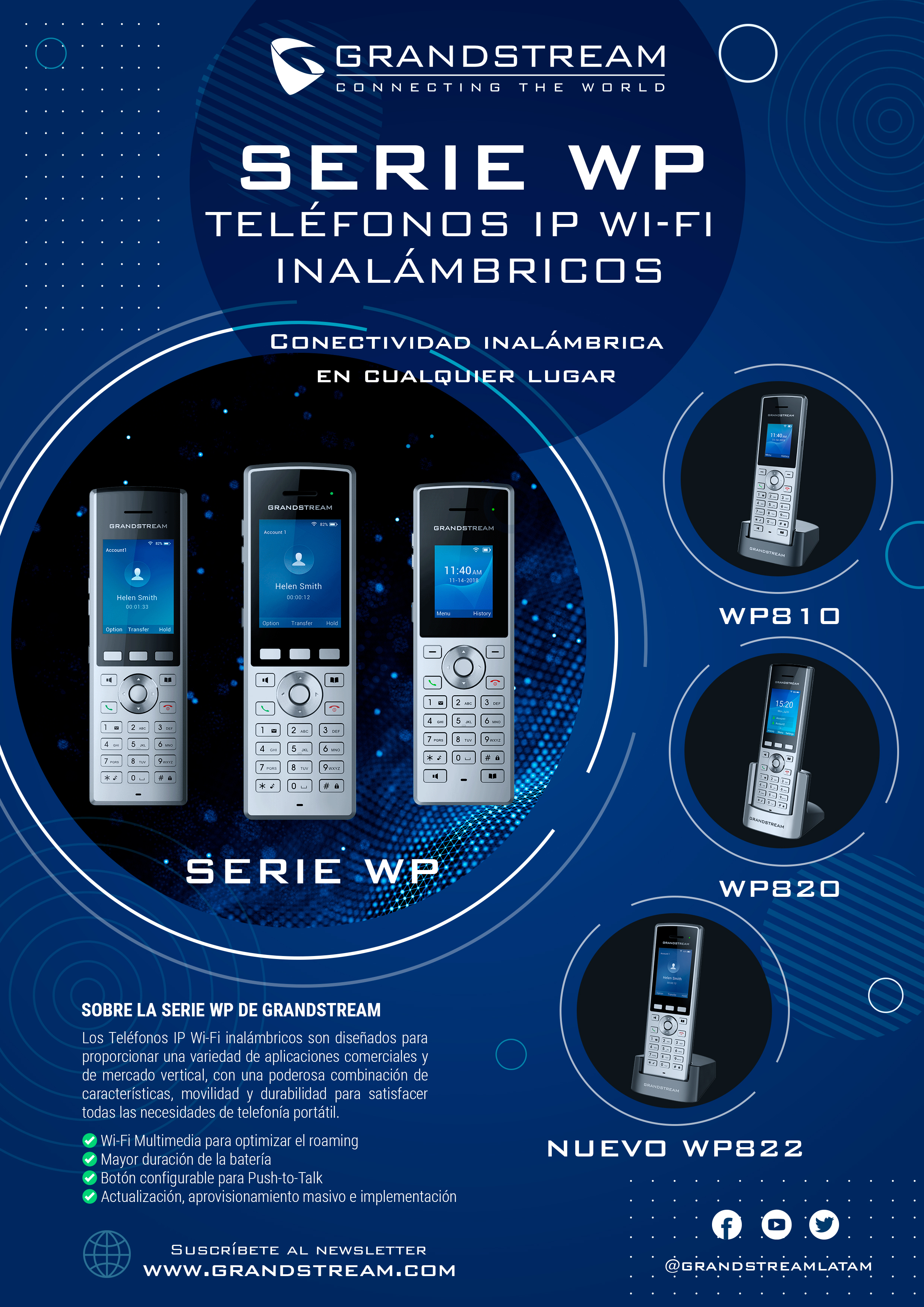 Copy sugerido para redes sociales: ¡Olvídese de los cables! Lleve a su hogar la movilidad y funcionalidades que requiere para estar comunicado con los demás, gracias a los Teléfonos IP Portátiles de Grandstream Networks.