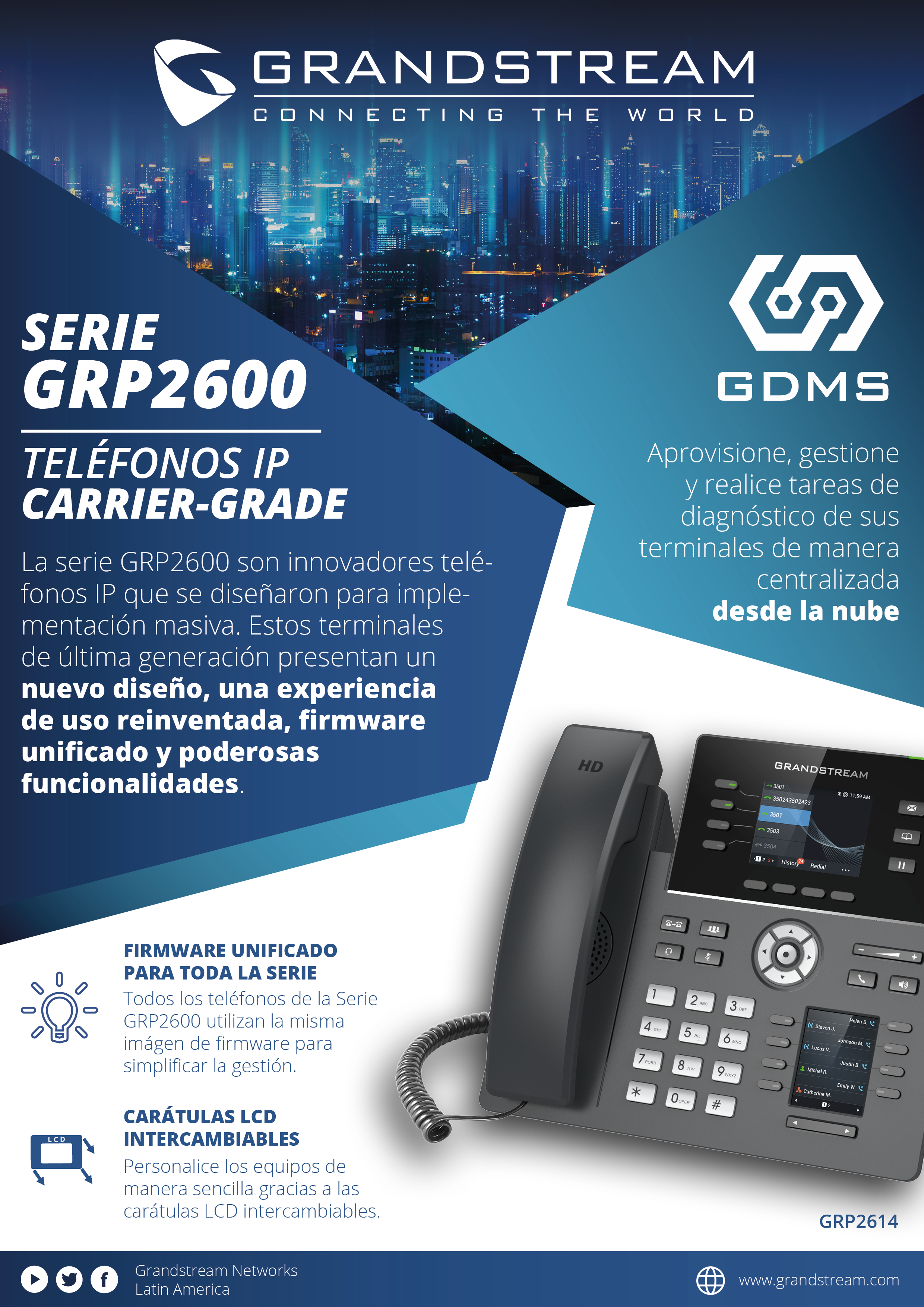 Teléfonos IP Carrier-Grade Serie GRP2600 + GDMS